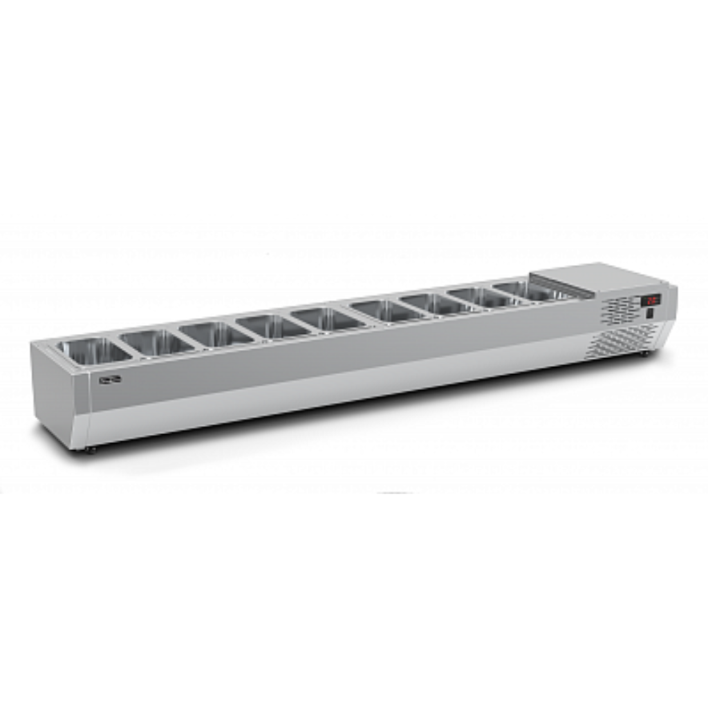 Витрина для ингредиентов Carboma A30 SM 1,9 (9 GN1/4) предназначена для охлаждения, кратковременного хранения и наглядной демонстрации ингредиентов и готовых блюд — салатов, пиццы, закусок и т.п. Отлично подходит для установки на холодильные и пицца-столы, барные стойки, прилавки и другие поверхности. Рекомендуется для кафе, ресторанов, баров, супермаркетов и объектов быстрого питания.
