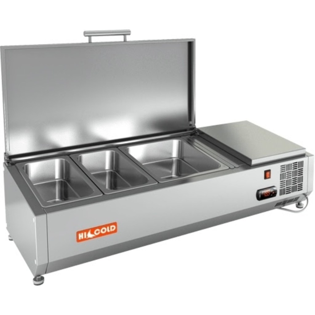 Каталог оборудования Холодильное оборудованиеВитрины для ингредиентовВитрина холодильная для ингредиентов HICOLD VRTU 1000 к PZE3 (1/3) Витрина холодильная для ингредиентов HICOLD VRTU 1000 к PZE3 (1/3) Код товара: 064-664 Поделиться: WhatsAppTelegram СравнитьДобавить в КПВ избранное 0 47 673 ₽ В корзину 0 шт Под заказСамовывоз сегодня бесплатно Взять в кредит Купить в лизинг Получить консультацию в WhatsApp Описание Характеристики Отзывы 0 Инструкции 3 Витрина холодильная для ингредиентов HICOLD VRTU 1000 к PZE3 (1/3) предназначена для охлаждения, кратковременного хранения и демонстрации ингредиентов, салатов и готовых блюд на предприятиях общественного питания и торговли. Устанавливается на холодильные столы для пиццы серии PZE3 благодаря встроенным креплениям в нижней части корпуса. На фото показана аналогичная модель с настольной установкой. Ключевые особенности: Корпус из нержавеющей стали — долговечность и лёгкость ухода. Электронная панель управления — точная настройка температуры. Исполнение U — оснащена крышкой для защиты продуктов. Высота витрины — 279 мм — компактное размещение на рабочей поверхности. Вместимость: 2 x GN1/3 + 1 x GN1/2 — рациональная организация хранения (гастроёмкости приобретаются отдельно). Совместимые модели столов: PZE3-11/GN, PZE3-11/SN HICOLD VRTU 1000 к PZE3 (1/3) — это профессиональная настольная витрина, которая сочетает компактные размеры, современное управление и надежную защиту ингредиентов. Отличный выбор для пиццерий, ресторанов и кафе, где важны удобство доступа, сохранность продуктов и высокая скорость работы.Изображение товара, представленного на фото, может отличаться от его фактического вида. Показать все Габаритные размеры1000×385×279 ммДиапазон рабочей температурыот +2 до +7 °CДлина1000 ммГлубина385 ммВысота279 ммТип крышкиМеталлическая Гастроемкостей3 штТип гастроемкостейGN 1/2, GN 1/3 Напряжение220 ВТип охлажденияСтатическое Материал изготовленияНержавеющая сталь ХладагентR134 Мощность0,15 кВтВес нетто 27 кгВес брутто60 кгТип оттайкиРучная Габариты в упаковке1180×550×590 ммБрендHicold Оставить отзыв Еще никто не оставил отзыв на этот товар Инструкция на HICOLD VRTU 2360 к PZ4.pdfСхема установки на витрину.jpgДекларация о соответствии.pdf Похожие товары Перейти в каталог Под заказ 50 575 ₽ Витрина для ингредиентов Polair VT2-G (1/3) с крышкой В наличии 72 104 ₽ Витрина холодильная для ингредиентов TEFCOLD VK33-120 С этим товаром покупают В наличии 102 148 ₽ Стол морозильный Cooleq SNACK2100BT/600 В наличии 92 440 ₽ Льдогенератор HURAKAN HKN-IMG40 (гурме) Ранее просмотрено Под заказ 392 468 ₽ Витрина холодильная CRYSPI Magnum F 3750 (без боковин)