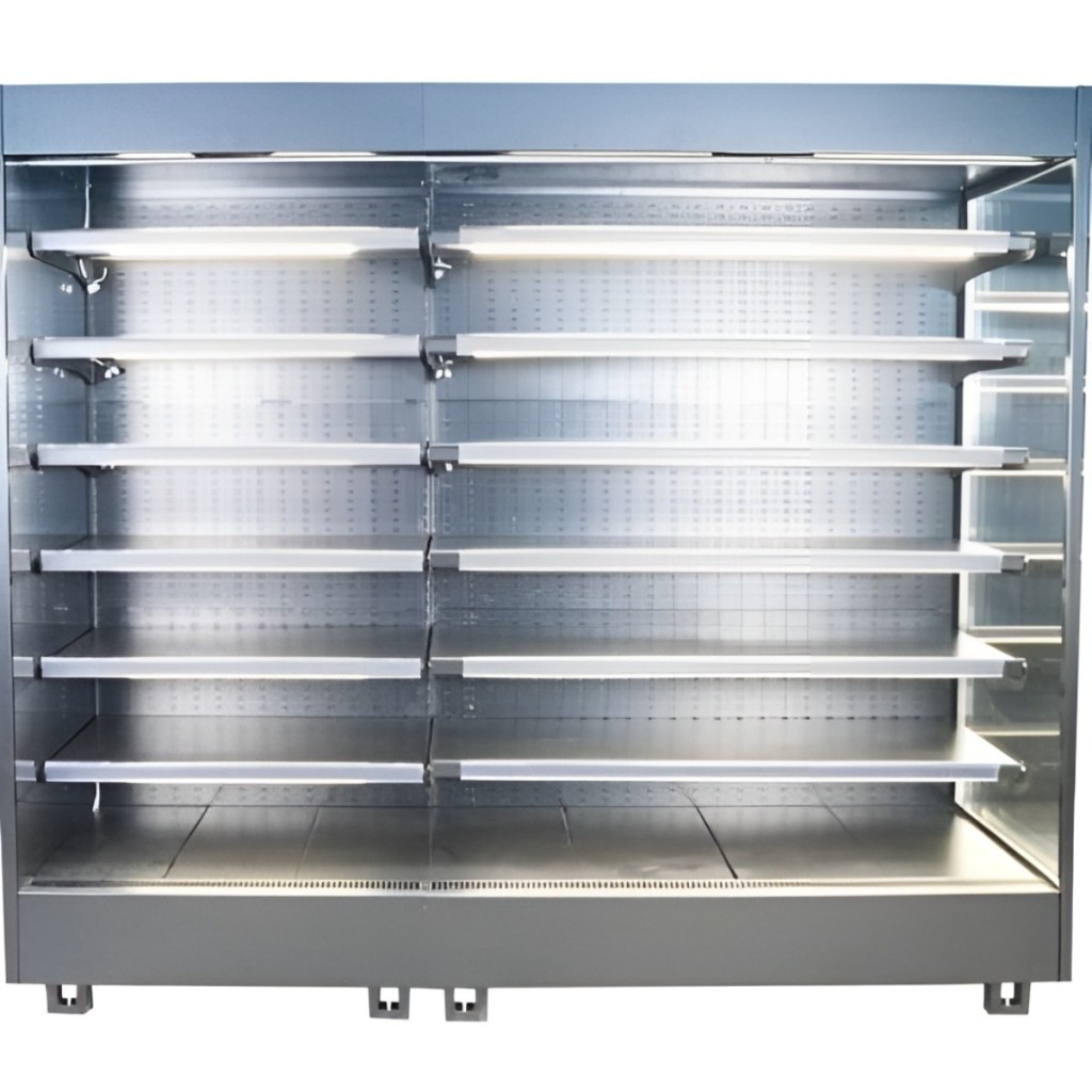Система воздушной завесы предотвращает попадание тёплого воздуха внутрь витрины, обеспечивая стабильный температурный режим даже при интенсивной эксплуатации. Встроенное LED-освещение делает выкладку яркой и привлекательной, при этом потребляет минимум электроэнергии.