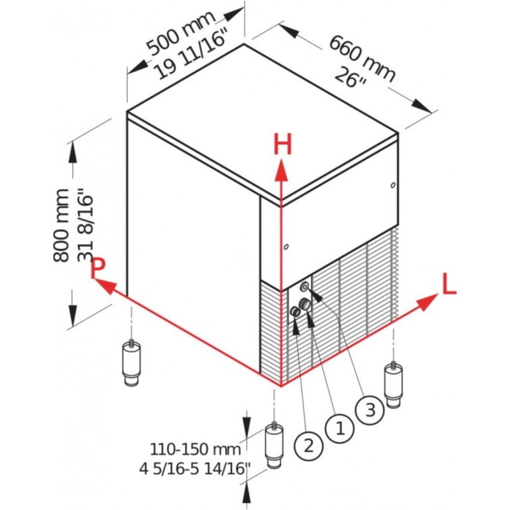 Корпус из нержавеющей стали AISI 304 с отделкой Scotch Brite устойчив к износу и коррозии, а гладкие скругленные внутренние поверхности облегчают очистку и поддержание гигиены. Модель обеспечивает производительность до 95 кг льда в сутки, что позволяет эффективно работать даже при высокой загрузке.