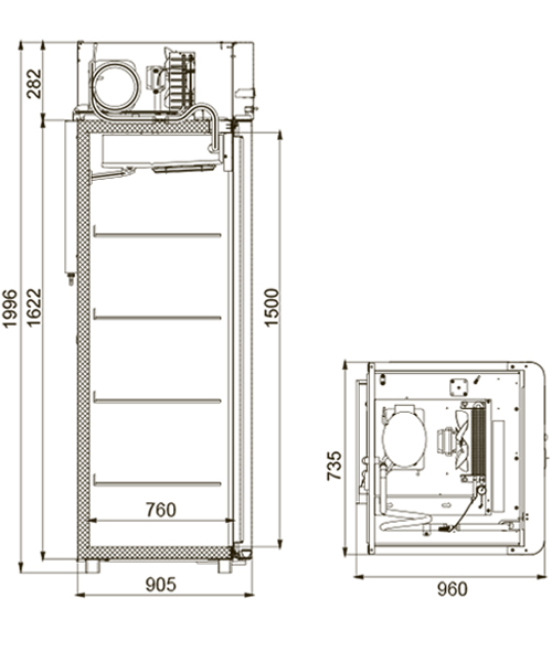 Каталог оборудования Холодильное оборудованиеШкафы холодильныеШкафы морозильные низкотемпературные до -18 °СШкаф морозильный Polair CB107-Sm Alu Шкаф морозильный Polair CB107-Sm Alu Код товара: 062-592 Поделиться: WhatsAppTelegram СравнитьДобавить в КПВ избранное 0 151 662 ₽ В корзину 0 шт Под заказСамовывоз сегодня бесплатно Взять в кредит Купить в лизинг Получить консультацию в WhatsApp Описание Характеристики Отзывы 0 Инструкции 4 Шкаф морозильный Polair CB107-Sm Alu предназначен для демонстрации и надежного хранения продуктов на предприятиях общественного питания и торговли. Цельнозаливной корпус выполнен из стали с полимерным покрытием и дополнен алюминиевыми профилями, что обеспечивает высокую механическую прочность и долговечность конструкции. Алюминиевые элементы дверей и верхней панели подчеркивают современный и премиальный дизайн. Шкаф стабильно работает при температуре окружающей среды до +40 °С и относительной влажности воздуха до 80%, сохраняя продукты в оптимальных условиях. Основные особенности: Электронный блок управления с жидкокристаллическим дисплеем Верхнее расположение агрегата, обеспечивающее удобный доступ к внутреннему объему Клапан Шредера для обслуживания системы охлаждения Компенсационный клапан с ПЭНом обогрева для предотвращения перепадов давления ПЭН обогрева трубки слива конденсата и ПЭН обогрева дверного проема для защиты от наледи Распашной тип дверей с возможностью изменения стороны открывания Интегрированные ручки, встроенные в алюминиевые профили дверей Эластичные уплотнители с магнитными вставками, обеспечивающие максимальную герметизацию Встроенная внутренняя подсветка для удобного обзора содержимого Микропереключатель, отключающий вентилятор и включающий подсветку при открытии двери Регулируемые по высоте ножки и педаль для открывания двери, повышающие эргономику использования Замок для безопасного хранения продукции 4 полки формата GN 2/1 (530×650 мм) с допустимой нагрузкой до 40 кг Толщина теплоизоляции корпуса — 61 мм Изображение товара, представленного на фото, может отличаться от его фактического вида. Показать все Габаритные размеры735×945×1996 ммДиапазон рабочей температурыдо -18 °CДлина735 ммГлубина450 ммВысота1996 ммОбъём700 лМатериал корпусаНержавеющая сталь Тип управленияМеханическое Расход электроэнергии в сутки12 кВтКоличество полок2 штКоличество дверей1 штЗамокЕсть Тип двериМеталлическая Способ открыванияРаздвижные (купе) Напряжение220 ВХладагентR290 Расположение агрегатаНижнее Габариты в упаковке850×988×2160 ммВес нетто128 кгВес брутто152 кгБрендPolair Оставить отзыв Еще никто не оставил отзыв на этот товар Схема POLAIR CB107-Sm.jpgИнструкция на POLAIR CB107-Sm.pdfСертификат соответствия.pdfДекларация о соответствии.pdf Похожие товары Перейти в каталог В наличии 313 817 ₽ Шкаф морозильный с глухой дверью TEFCOLD BF850 нержавеющий под противни 600Х400/800ММ В наличии 166 301 ₽ Шкаф морозильный МХМ Капри 1,5НВ Под заказ 114 830 ₽ Шкаф морозильный МХМ Капри 0,7НВ Под заказ 139 830 ₽ Шкаф морозильный Ангара 1000 М Под заказ 275 905 ₽ Шкаф морозильный HURAKAN HKN-GX1410BT В наличии 51 488 ₽ Шкаф морозильный HURAKAN HKN-UF100G В наличии 89 104 ₽ Шкаф морозильный Polair CB105-S В наличии 214 659 ₽ Шкаф морозильный Polair DB114-S С этим товаром покупают Под заказ 262 573 ₽ Витрина холодильная CRYSPI Magnum 3750 (без боковин) В наличии 94 143 ₽ Витрина холодильная Полюс Эко ВХСр-1,5 (G85 SV 1,5-1) Под заказ 127 703 ₽ Витрин
