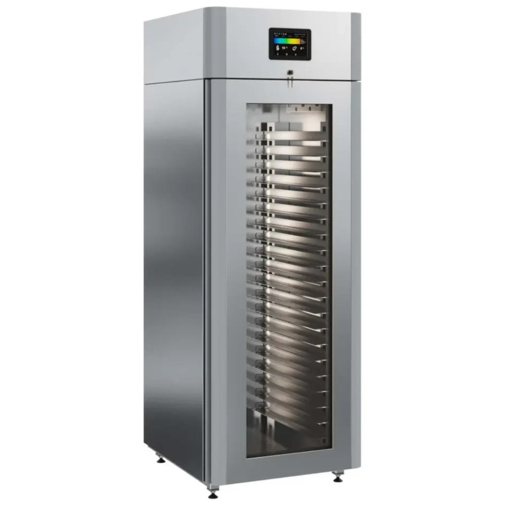 Каталог оборудования Холодильное оборудованиеШкафы холодильныеСпециализированные холодильные шкафыШкаф холодильный для хлебопекарных производств Polair CS107-Bakery Br со стеклом (Тип 2) Шкаф холодильный для хлебопекарных производств Polair CS107-Bakery Br со стеклом (Тип 2) Код товара: 062-623 Поделиться: WhatsAppTelegram СравнитьДобавить в КПВ избранное 0 419 900 ₽ В корзину 0 шт Под заказСамовывоз сегодня бесплатно Взять в кредит Купить в лизинг Получить консультацию в WhatsApp Описание Характеристики Отзывы 0 Инструкции 5 Шкаф холодильный для хлебопекарных производств Polair CS107-Bakery Br со стеклом (Тип 2) предназначен для создания оптимальных условий хранения и расстойки заготовок из теста на предприятиях общественного питания и торговли. Корпус цельнозаливной, выполнен из нержавеющей стали, дверь — стеклопакет. Оборудование стабильно работает при температуре окружающей среды до +40 °C. В комплект входят 20 пар направляющих размером 400×600 мм. Особенности: Многофункциональные режимы: охлаждение тестовых заготовок, замедление ферментации, хранение, регенерация, брожение и расстойка Динамическое охлаждение с мягким обдувом без заветривания и автоматическая оттайка с системой испарения конденсата Панель управления с 7" дисплеем: контроль температуры, влажности (регулируется от 60 до 95 %), скорости вентилятора и времени, возможность создания и сохранения собственных программ Встроенный ультразвуковой увлажнитель (требуется подключение к системе водоочистки и канализации) Эргономичная конструкция: верхнее расположение агрегата, распашная дверь со стеклопакетом и механизмом самозакрывания, педаль для удобного открытия, съёмные направляющие и легко заменяемый уплотнитель с магнитной вставкой Простота ухода: штампованное углубление в дне корпуса для сбора загрязнений Экологичный хладагент R290 Энергоэффективность: потребляемая мощность — 0,55 кВт (охлаждение), 0,9 кВт (нагрев) Толщина стенки корпуса — 43 мм Polair CS107-Bakery Br со стеклом (Тип 2) — современный шкаф отложенной расстойки, обеспечивающий полный контроль и гибкость при работе с тестовыми заготовками. Благодаря многофункциональным режимам, точной настройке параметров и продуманной конструкции, он становится надёжным решением для пекарен и кондитерских, стремящихся к высокому качеству продукции и удобству в эксплуатации.Изображение товара, представленного на фото, может отличаться от его фактического вида. Показать все Габаритные размеры697×1005×1960 ммДиапазон рабочей температурыот -10 до +40 °CДлина697 ммШирина1005 ммВысота1960 ммОбъём700 лКол-во дверей1 Тип двериСтеклянная Уровень влажностиот 60 до 95 %Направляющие под EN 40*6020 Расстояние между направляющими60 ммХолодильный агрегатВстроенный Тип оттайкиАвтоматическая Тип охлажденияДинамический ПодсветкаЕсть ХладагентR290 Вес нетто180 кгВес брутто205 кгБрендPolairВсе специализированные холодильные шкафы Из нержавейки Оставить отзыв Еще никто не оставил отзыв на этот товар Схема POLAIR CS107 Bakery Br.jpgИнструкция на POLAIR CS107 Bakery Br.pdfБрошюра на хлебопекарное оборудование POLAIR.pdfДекларация о соответствии.pdfСертификат соответствия.pdf Похожие товары Перейти в каталог Под заказ 373 915 ₽ Шкаф холодильный для вызревания салями Polair CS107 Salami черный, со стеклом Под заказ 252 314 ₽ Шкаф холодильный для вызревания мяса и сыра Carboma M700GN-1-G-MHC 9005 Под заказ 118 831 ₽ Шкаф холодильный HURAKAN HKN-MA100 для созревани