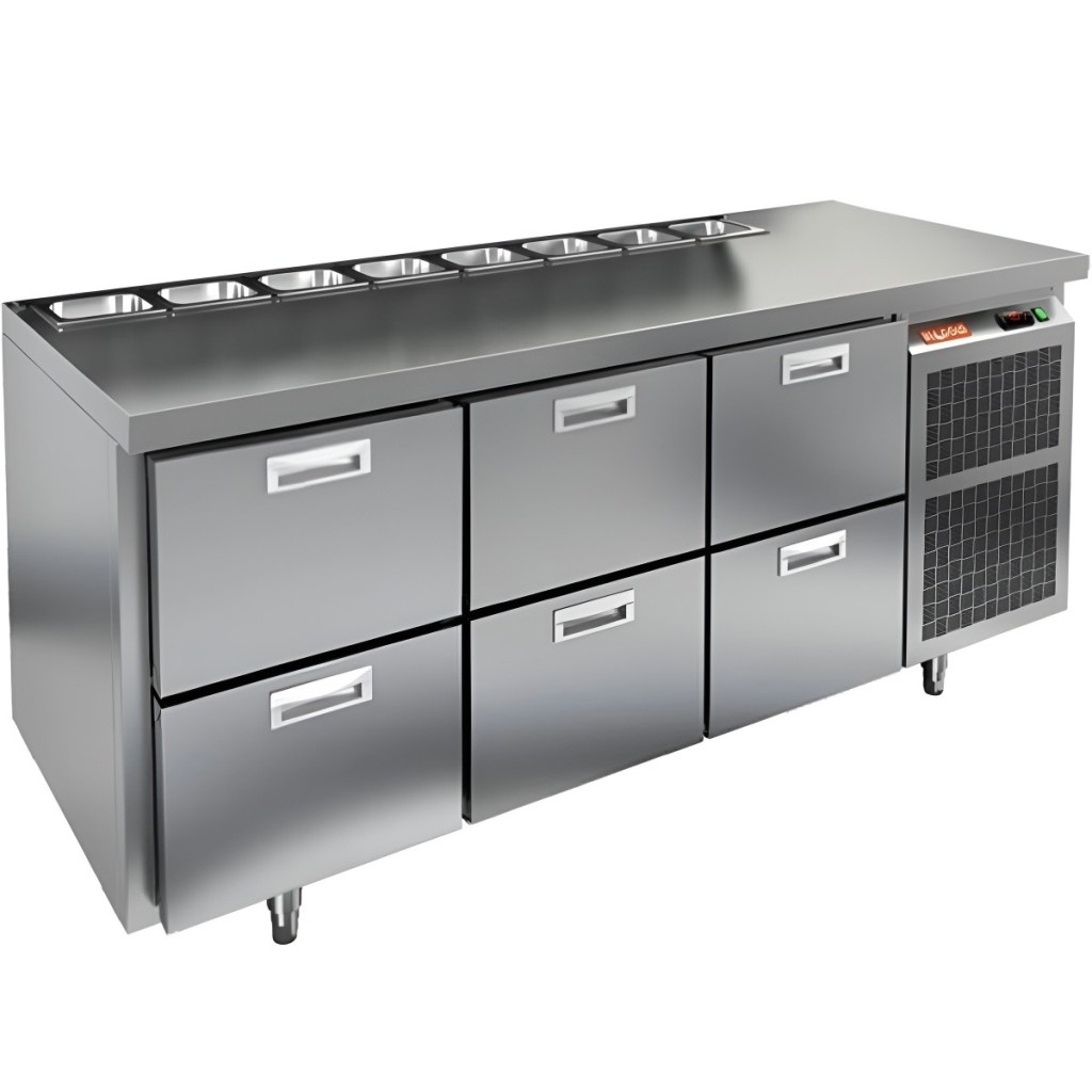 Каталог оборудования Холодильное оборудованиеСтолы охлаждаемыеСтолы холодильные для салатовСтол холодильный для салатов HiCold SL2-222GN (1/6) О без крышки Стол холодильный для салатов HiCold SL2-222GN (1/6) О без крышки Код товара: 064-818 Поделиться: WhatsAppTelegram СравнитьДобавить в КПВ избранное 0 255 861 ₽ В корзину 0 шт Под заказСамовывоз сегодня бесплатно Взять в кредит Купить в лизинг Получить консультацию в Max Описание Характеристики Отзывы 0 Инструкции 1 Стол холодильный для салатов HiCold SL2-222GN (1/6) О без крышки предназначен для использования на предприятиях общественного питания и торговли. Он подходит для хранения, обработки и кратковременного охлаждения ингредиентов, применяемых при приготовлении пиццы, салатов, закусок и других блюд. Модель совмещает охлаждаемый объем и рабочую поверхность, что значительно повышает удобство и скорость работы персонала. Корпус и столешница выполнены из прочной и гигиеничной нержавеющей стали, устойчивой к влаге, загрязнениям и механическим повреждениям. Особенности модели: Электронная панель управления — точная настройка температуры. Салат-бар на 8 гастроемкостей — быстрый доступ к ингредиентам. 6 внутренних ящиков — удобное размещение и легкая замена продуктов. Автоматические доводчики дверей — комфортная эксплуатация. Съёмные магнитные уплотнители — герметичность и стабильная температура. Открытая агрегатная часть — лёгкое обслуживание. Регулируемые ножки — установка на любой поверхности. Глубина гастроемкостей до 150 мм, столешница и теплоизоляция — 50 мм. HiCold SL2-222GN (1/6) О без крышки — универсальное и функциональное решение для профессиональной кухни, позволяющее оптимизировать рабочие процессы и повысить производительность за счет удобного хранения и быстрого доступа к ингредиентам.Изображение товара, представленного на фото, может отличаться от его фактического вида. Показать все Габаритные размеры1835×700×850 ммДиапазон рабочей температурыот +2 до +10 °CРасположение агрегатаБоковое Материал столешницыНержавеющая Тип столаС ящиками Объём505 лТип гастроемкостейGN 1/6 Количество ящиков6 штНапряжение220 ВМощность0,5 кВтТип охлажденияДинамическое Тип оттайкиАвтоматическая СтолешницаБез борта Габариты в упаковке2000×850×1000 ммВес нетто130 кгВес брутто180 кгБрендHicold Оставить отзыв Еще никто не оставил отзыв на этот товар Декларация о соответствии.pdf Ранее просмотрено Под заказ 222 022 ₽ Стол холодильный для салатов HiCold SLE3-1111GN полипропилен, без крышки Под заказ 49 843 ₽ Дверь холодильная распашная одностворчатая СТ-РДО-1200*2200/80 Под заказ 47 472 ₽ Дверь холодильная распашная одностворчатая СТ-РДО-1100*2200/80 Под заказ 43 547 ₽ Дверь холодильная распашная одностворчатая СТ-РДО-900*2200/80