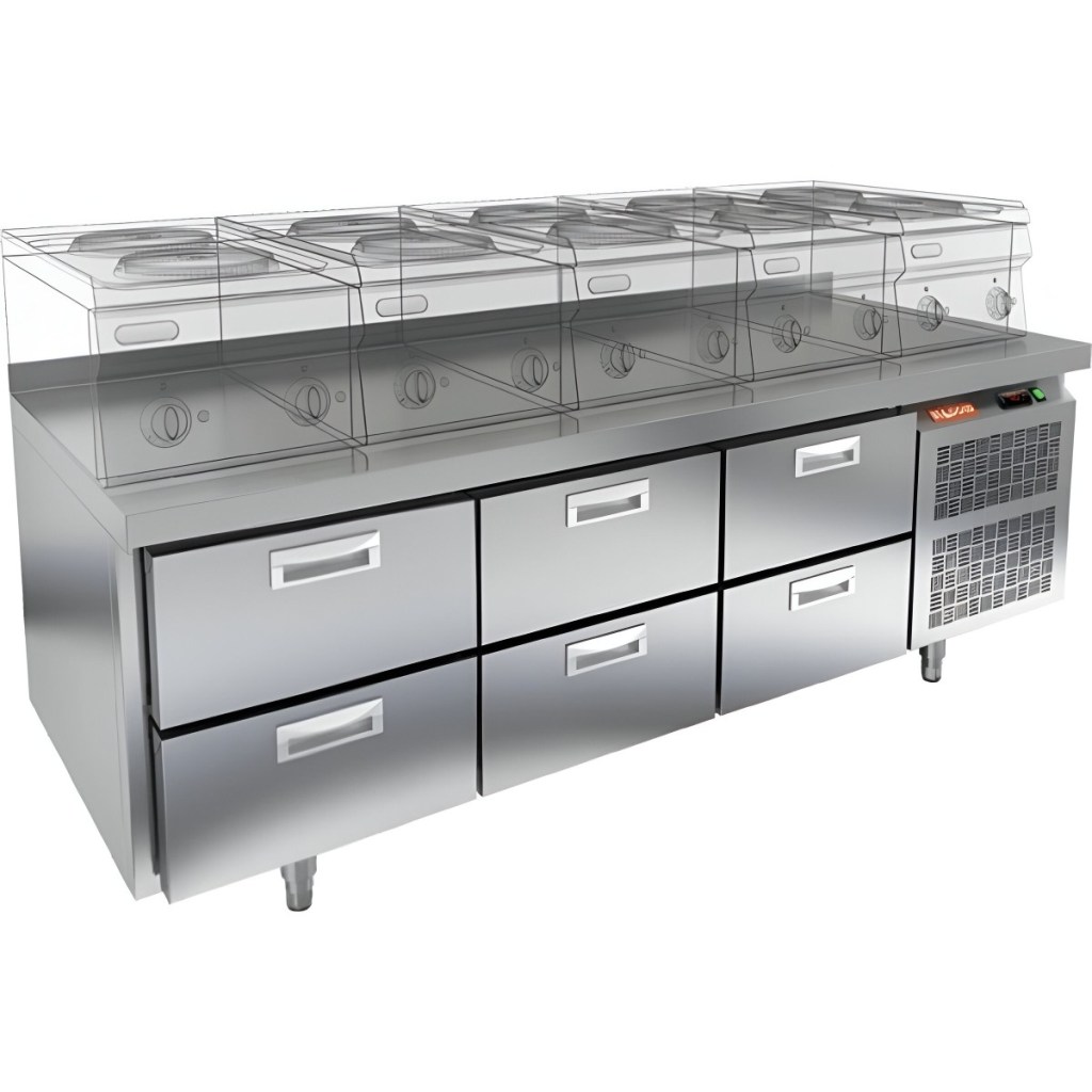 Каталог оборудования Холодильное оборудованиеСтолы охлаждаемыеСтолы холодильные под тепловое оборудованиеСтол охлаждаемый HiCold GN 222/TN LT SH под тепловое оборудование Стол охлаждаемый HiCold GN 222/TN LT SH под тепловое оборудование Код товара: 065-447 Поделиться: WhatsAppTelegram СравнитьДобавить в КПВ избранное 0 222 292 ₽ В корзину 0 шт Под заказСамовывоз сегодня бесплатно Взять в кредит Купить в лизинг Получить консультацию в WhatsApp Описание Характеристики Отзывы 0 Инструкции 2 Стол охлаждаемый HiCold GN 222/TN LT SH под тепловое оборудование предназначен для обработки продуктов и временного хранения скоропортящихся ингредиентов и напитков на предприятиях общественного питания и торговли. Устройство совмещает функции холодильной камеры и рабочей поверхности, что делает его особенно удобным для профессиональных кухонь. Столешница рассчитана на установку теплового оборудования: под рабочей поверхностью встроен ДСП-лист, который укрепляет конструкцию и препятствует проникновению тепла внутрь. Такое решение обеспечивает дополнительную жесткость, позволяет рационально использовать рабочее пространство и повышает эффективность работы на кухне. Особенности: 6 выдвижных ящиков обеспечивают удобный доступ к продуктам и рациональную организацию пространства Автоматические доводчики дверей с фиксатором открытого положения улучшают эргономику работы и помогают сохранить холод внутри камеры. Легкозаменяемые магнитные уплотнители способствуют герметичности и простоте технического обслуживания. Конструкция на низких ножках обеспечивает стабильность и удобство эксплуатации. Толщина столешницы — 50 мм обеспечивает надёжную опору при интенсивной эксплуатации. Высота борта — 50 мм препятствует скатыванию продуктов и инвентаря. Толщина теплоизоляции — 50 мм способствует энергоэффективности и поддержанию стабильной температуры. Температурный диапазон окружающей среды — от 12 до 37 °C, что делает оборудование универсальным в разных климатических условиях. HiCold GN 222/TN LT SH сочетает функциональность, надёжность и простоту в обслуживании. Идеально подходит для кухонь ресторанов, кафе и других заведений общепита, где важно одновременно эффективно хранить продукты и иметь под рукой рабочее пространство.Изображение товара, представленного на фото, может отличаться от его фактического вида. Показать все Габаритные размеры1835×700×610 ммДиапазон рабочей температурыот -2 до +10 °CМатериал столешницыНержавеющая Расположение агрегатаБоковое Объём375 лТип столаС ящиками Количество ящиков6 штНапряжение220 ВМощность0,46 кВтТип охлажденияДинамический Тип оттайкиАвтоматическая СтолешницаС бортом Габариты в упаковке2000×850×850 ммВес нетто124 кгВес брутто170 кгБрендHicold Оставить отзыв Еще никто не оставил отзыв на этот товар Паспорт на HICOLD GN 222TN LT.pdfДекларация о соответствии.pdf Похожие товары Перейти в каталог Под заказ 137 619 ₽ Стол холодильный среднетемпературный Polair TD3GN-G Под заказ 108 164 ₽ Стол холодильный среднетемпературный HURAKAN HKN-GN3TN С этим товаром покупают Под заказ 389 300 ₽ Шкаф холодильный для вызревания мяса Polair CS107 Meat (Тип 1) Ранее просмотрено Под заказ 109 400 ₽ Витрина нейтральная Carboma GC110 N 2,0-1 (2,0 Carboma CG110) (сталь)