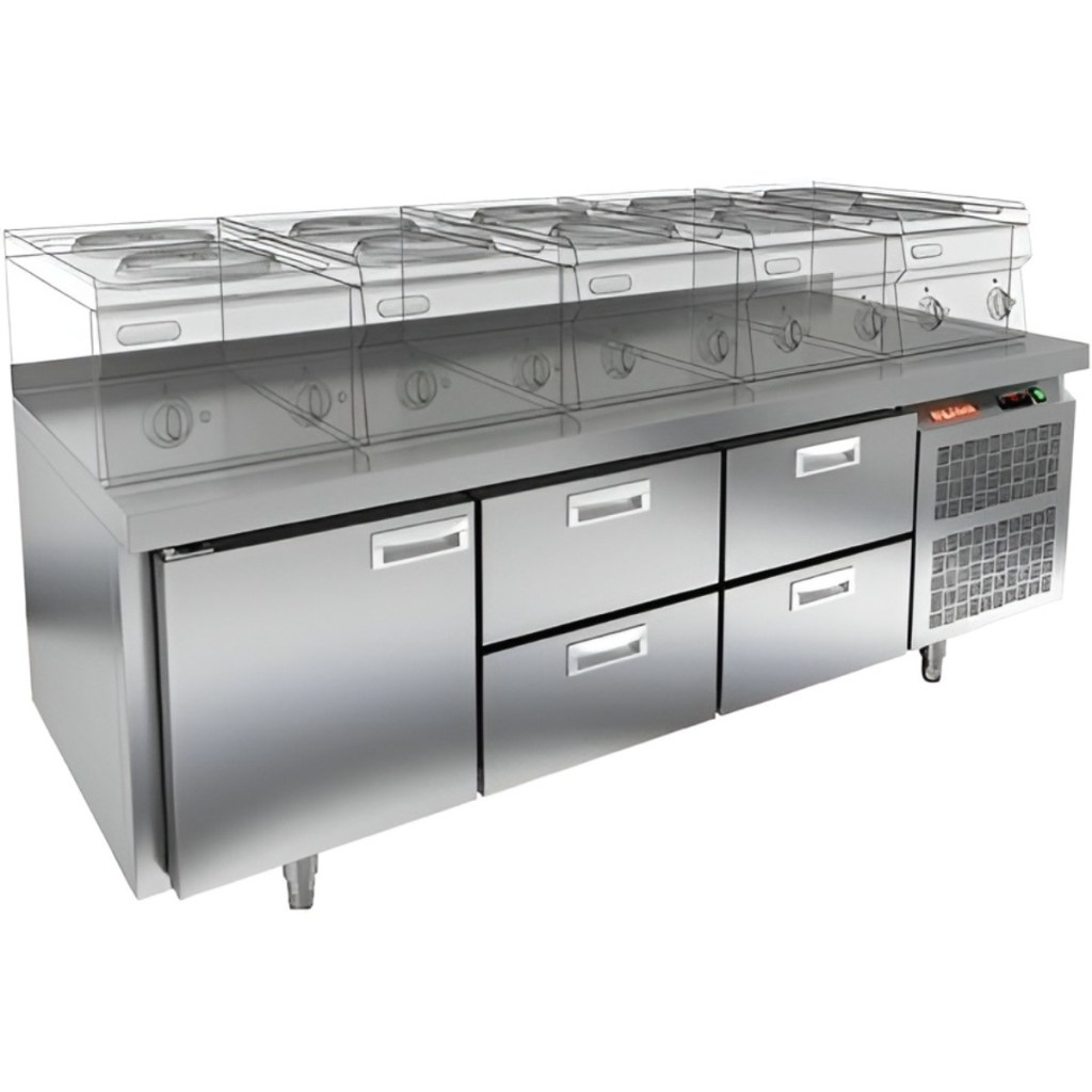 Каталог оборудования Холодильное оборудованиеСтолы охлаждаемыеСтолы холодильные под тепловое оборудованиеСтол охлаждаемый HiCold SN 122/TN LT под тепловое оборудование Стол охлаждаемый HiCold SN 122/TN LT под тепловое оборудование Код товара: 065-547 Поделиться: WhatsAppTelegram СравнитьДобавить в КПВ избранное 0 193 042 ₽ В корзину 0 шт Под заказСамовывоз сегодня бесплатно Взять в кредит Купить в лизинг Получить консультацию в WhatsApp Описание Характеристики Отзывы 0 Инструкции 2 Стол охлаждаемый HiCold SN 122/TN LT SH под тепловое оборудование предназначен для обработки ингредиентов и временного хранения скоропортящихся продуктов и напитков на предприятиях общественного питания и торговли. Устройство совмещает функции рабочей поверхности и холодильной камеры. Столешница рассчитана на установку теплового оборудования: под рабочей поверхностью встроен ДСП-лист, который укрепляет конструкцию и препятствует проникновению тепла внутрь. Такое решение обеспечивает дополнительную жесткость, позволяет рационально использовать рабочее пространство и повышает эффективность работы на кухне. Особенности: 1 распашная дверь — обеспечивает удобный доступ к внутреннему пространству. 4 выдвижных ящика — обеспечивают удобный доступ к продуктам и инвентарю Автоматические доводчики дверей с фиксатором открытого положения повышают эргономику и способствуют сохранению холода. Легкозаменяемые магнитные уплотнители обеспечивают плотное прилегание дверей и лёгкость в обслуживании. Открытая агрегатная часть упрощает доступ к компрессору при техническом обслуживании. Регулируемые по высоте низкие ножки — удобная установка и устойчивость стола даже на неровной поверхности. Толщина столешницы — 50 мм обеспечивает прочность рабочей поверхности. Высота борта — 50 мм предотвращает падение продуктов и инвентаря. Толщина теплоизоляции — 50 мм способствует энергоэффективности и стабильному температурному режиму. HiCold SN 122/TN LT SH — это надёжное и удобное оборудование, сочетающее охлаждение и рабочее пространство. Благодаря продуманной конструкции и совместимости с гастроемкостями GN 1/1, стол станет практичным решением для кухни любого профессионального уровня.Изображение товара, представленного на фото, может отличаться от его фактического вида. Показать все Габаритные размеры1835×600×675 ммДиапазон рабочей температурыот -2 до +10 °CМатериал столешницыНержавеющая Расположение агрегатаБоковое Объём320 лТип столаС дверьми и ящиками Тип двериГлухая Количество дверей1 штКоличество ящиков4 штРазмер полки430×325 ммНапряжение220 ВМощность0,46 кВтТип охлажденияДинамический Тип оттайкиАвтоматическая СтолешницаС бортом Габариты в упаковке1935×740×970 ммВес нетто162 кгВес брутто182 кгБрендHicold Оставить отзыв Еще никто не оставил отзыв на этот товар Паспорт на HICOLD SN 122TN LT SH.pdfДекларация о соответствии.pdf Похожие товары Перейти в каталог В наличии 128 777 ₽ Стол морозильный Cooleq GN3200BT с бортом Под заказ 166 404 ₽ Стол морозильный Abat СХН-70-02 без борта (дверь, дверь, дверь) С этим товаром покупают В наличии 140 675 ₽ Шкаф холодильный универсальный Polair CV 110-S Под заказ 76 010 ₽ Газовый лавовый гриль Abat ГЛК-40Н Ранее просмотрено Под заказ 118 071 ₽ Стол охлаждаемый HiCold GN 2/TN LT SH под тепловое оборудование