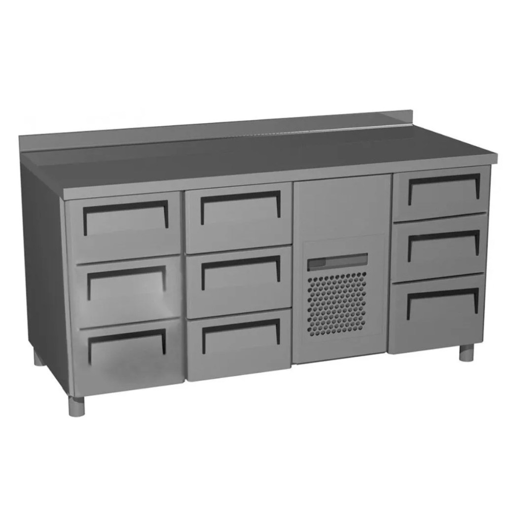 Стол холодильный среднетемпературный Carboma T70 M3-1 (3GN/NT Carboma) с бортом (0430-2 корпус нерж 9 ящ) — профессиональное оборудование для предприятий общественного питания и торговли. Предназначен для раскатки теста, подготовки ингредиентов, охлаждения и кратковременного хранения скоропортящихся продуктов и напитков. Модель оснащена 9 выдвижными ящиками, а ножки регулируются по высоте от 90 до 110 мм.