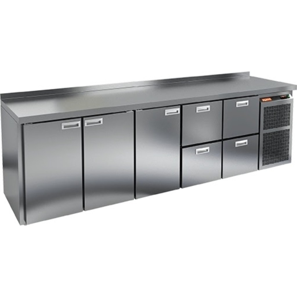 Каталог оборудования Холодильное оборудованиеСтолы охлаждаемыеСтолы холодильные среднетемпературныеСтол холодильный среднетемпературный HiCold GN 11122 BR2 TN Стол холодильный среднетемпературный HiCold GN 11122 BR2 TN Код товара: 062-293 Поделиться: WhatsAppTelegram СравнитьДобавить в КПВ избранное 0 260 901 ₽ В корзину 0 шт В наличииСамовывоз сегодня бесплатно Взять в кредит Купить в лизинг Получить консультацию в Max Описание Характеристики Отзывы 0 Стол холодильный среднетемпературный HiCold GN 11122 BR2 TN предназначен для обработки ингредиентов при приготовлении блюд и кратковременного хранения скоропортящихся продуктов и напитков на предприятиях общественного питания и торговли. Модель оснащена удобной электронной панелью управления. Корпус и столешница выполнены из нержавеющей стали, что обеспечивает долговечность и гигиеничность. В комплект входят 3 полки, которые позволяют удобно организовать внутреннее пространство. Особенности: 3 распашные двери для удобного доступа к камере 4 выдвижные секции для дополнительного удобства хранения и сортировки продуктов Автоматические доводчики дверей с фиксатором открытого положения повышают комфорт и безопасность эксплуатации Легкозаменяемые магнитные уплотнители обеспечивают надежную герметичность и простоту обслуживания Регулируемые по высоте ножки гарантируют устойчивость на любой поверхности Толщина столешницы — 50 мм для прочной и устойчивой рабочей поверхности Высота борта — 50 мм предотвращает падение продуктов и пролив жидкостей Толщина теплоизоляции — 50 мм обеспечивает эффективное сохранение холода Рабочий температурный диапазон — от +12 до +37 °C подходит для различных условий эксплуатации HiCold GN 11122 BR2 TN — многофункциональное и надежное решение для профессиональных кухонь и торговых точек, обеспечивающее удобство в работе и эффективное хранение продуктов. Изображение товара, представленного на фото, может отличаться от его фактического вида. Показать все Габаритные размеры2840×700×850 ммДиапазон рабочей температурыот -2 до +10 °CРасположение агрегатаБоковое Материал столешницыНержавеющая Тип столаС дверьми и ящиками Тип двериГлухая Объём960 лКоличество дверей3 штКоличество полок3 штКоличество ящиков4 штРазмер полки530×325 ммНапряжение220 ВМощность0,48 кВтТип охлажденияДинамический Тип оттайкиАвтоматическая СтолешницаС бортом Вес нетто268 кгВес брутто298 кгБрендHicoldВсе холодильные столы HicoldВсе нержавеющие холодильные столы Все холодильные столы с бортом Оставить отзыв Еще никто не оставил отзыв на этот товар Похожие товары Перейти в каталог Под заказ 79 911 ₽ Стол холодильный среднетемпературный HiCold GN 1/TN W Под заказ 107 046 ₽ Стол холодильный среднетемпературный Abat СХС-70 с бортом (дверь) С этим товаром покупают В наличии 93 502 ₽ Шкаф холодильный Полюс Carboma R560 В наличии 58 095 ₽ Витрина холодильная для ингредиентов HICOLD VRTU 1835 1/3