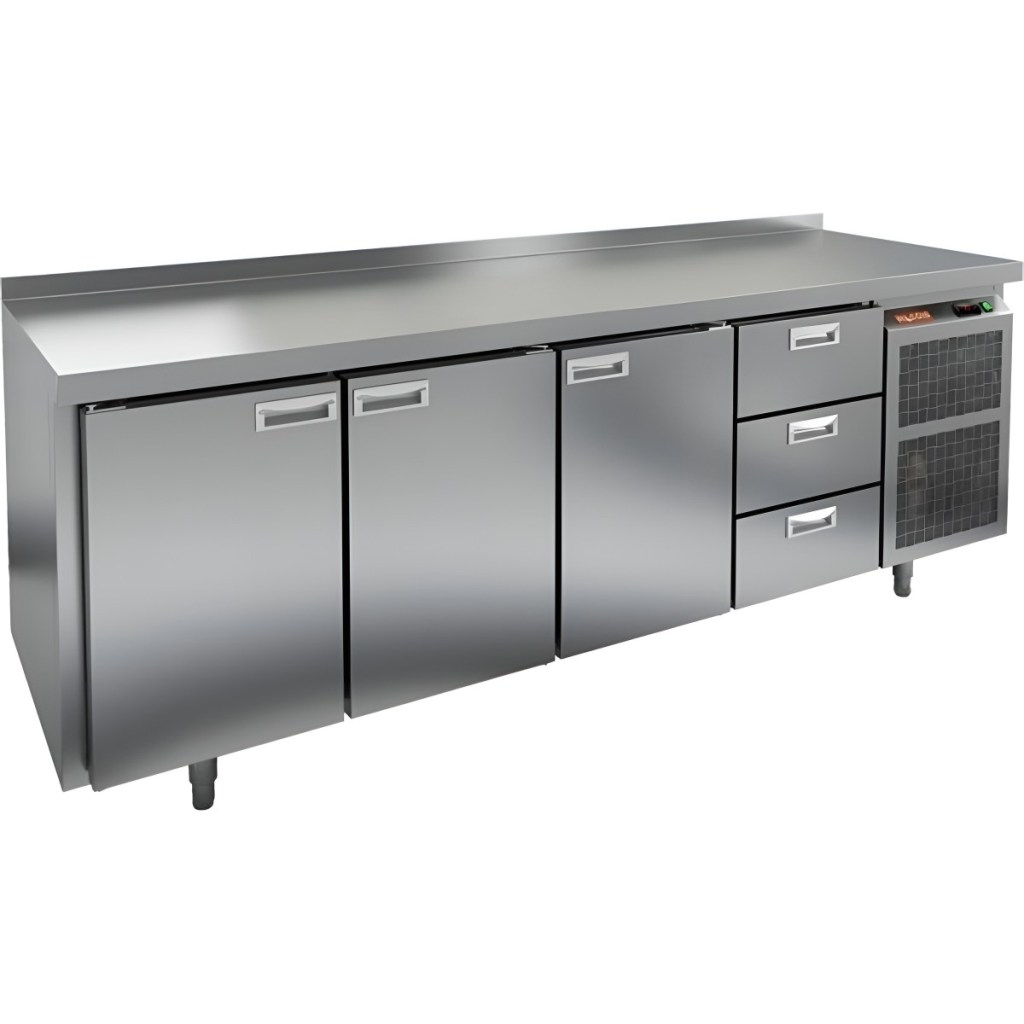 Каталог оборудования Холодильное оборудованиеСтолы охлаждаемыеСтолы холодильные среднетемпературныеСтол холодильный среднетемпературный HiCold SN 1113/TN Стол холодильный среднетемпературный HiCold SN 1113/TN Код товара: 001-329 Поделиться: WhatsAppTelegram СравнитьДобавить в КПВ избранное 0 212 841 ₽ В корзину 0 шт Под заказСамовывоз сегодня бесплатно Взять в кредит Купить в лизинг Получить консультацию в WhatsApp Описание Характеристики Отзывы 0 Инструкции 2 Стол холодильный среднетемпературный HiCold SN 1113/TN сочетает в себе рабочую поверхность для раскатывания теста и обработки ингредиентов, а также охлаждающую камеру для кратковременного хранения скоропортящихся продуктов и напитков. Оборудование предназначено для предприятий общественного питания и обеспечивает комфортную и эффективную работу на кухне. Особенности: Цельнозаливной корпус из нержавеющей стали с 50 мм теплоизоляцией, обеспечивающий высокую герметичность и жесткость конструкции. Надежный электронный блок управления с несколькими режимами оттаивания для удобства эксплуатации. Вентилятор повышенной мощности, обеспечивающий принудительную вентиляцию по всему объему стола и равномерное быстрое охлаждение. Интеллектуальное размораживание и термическое выпаривание конденсата для поддержания оптимальных условий внутри камеры. Новая экономичная модель компрессора, снижающая энергопотребление. Облегченный доступ к агрегату для удобства сервисного обслуживания. Двери с петлями-доводчиками, повышающими комфорт и безопасность при эксплуатации. Регулируемые по высоте ножки для адаптации к рабочей поверхности и неровностям пола. Максимальная нагрузка на полку — 50 кг. Высота борта — 50 мм для удобства и безопасности работы. Рабочая температура окружающего воздуха — от 12 до 37 °C. HiCold SN 1113/TN — это надежное, эргономичное и энергоэффективное решение для профессиональной кухни, сочетающее качественные материалы и современные технологии для оптимального хранения и подготовки продуктов.Изображение товара, представленного на фото, может отличаться от его фактического вида. Показать все Габаритные размеры2280×600×850 ммДиапазон рабочей температурыот -2 до +10 °CРасположение агрегатаБоковое Материал столешницыНержавеющая Тип столаС дверьми и ящиками Тип двериГлухая Объём570 лКоличество дверей3 штКоличество ящиков3 штНапряжение220 ВТип охлажденияДинамический Тип оттайкиАвтоматическая СтолешницаС бортом Вес нетто142 кгБрендHicoldВсе холодильные столы HicoldВсе оцинкованные холодильные столы Все холодильные столы с бортом Оставить отзыв Еще никто не оставил отзыв на этот товар Паспорт на HICOLD SN 1113/TN.pdfДекларация о соответствии.pdf Похожие товары Перейти в каталог Под заказ 197 541 ₽ Стол холодильный среднетемпературный HiCold SN 1112/TN Под заказ 258 741 ₽ Стол холодильный среднетемпературный HiCold SN 1133/TN В наличии 132 149 ₽ Стол холодильный среднетемпературный Cooleq GN4100TN С этим товаром покупают Под заказ 95 465 ₽ Жарочная поверхность Аbat АКО-80/1Н-С-02 Ранее просмотрено Под заказ Цена по запросу Камера холодильная Polair КХН-9,91 (2000×2900×2240) 100 мм