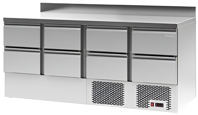 Каталог оборудования Холодильное оборудованиеСтолы охлаждаемыеСтолы холодильные среднетемпературныеСтол холодильный среднетемпературный Polair TMi4GN-2222-G Стол холодильный среднетемпературный Polair TMi4GN-2222-G Код товара: 062-578 Поделиться: WhatsAppTelegram СравнитьДобавить в КПВ избранное 0 265 574 ₽ В корзину 0 шт Под заказСамовывоз сегодня бесплатно Взять в кредит Купить в лизинг Получить консультацию в WhatsApp Описание Характеристики Отзывы 0 Стол холодильный среднетемпературный Polair TMi4GN-2222-G предназначен для хранения продуктов и подготовки ингредиентов на рабочей поверхности на предприятиях общественного питания и торговли. Цельнозаливные корпус и двери изготовлены из прочной стали, что обеспечивает высокую механическую прочность, надежную термоизоляцию, герметичность и долгий срок службы. Оборудование рассчитано на эксплуатацию при температуре окружающей среды до +43 °С и относительной влажности до 80%, что делает его отличным решением для профессиональных кухонь. Особенности: Электронный терморегулятор для точного и стабильного поддержания температуры; Класс защиты IP24, подходящий для работы в условиях повышенной влажности; Регулируемые по высоте ножки для удобства установки и устойчивости; Толщина столешницы — 40 мм, обеспечивающая прочность и устойчивость к нагрузкам; Толщина стенок корпуса — 43 мм для отличной теплоизоляции и долговечности; Тип полок: Gastronorm GN 1/1, удобный для использования стандартной гастроемкости; Оснащен 8 выдвижными ящиками, что значительно упрощает организацию хранения продуктов и обеспечивает быстрый доступ к ингредиентам. Polair TMi4GN-2222-G — это функциональный и надежный холодильный стол, который сочетает продуманную конструкцию с высокой вместимостью и удобством эксплуатации. Наличие восьми ящиков делает его особенно удобным для интенсивной работы на профессиональной кухне, где требуется быстрое и удобное хранение большого количества ингредиентов.Изображение товара, представленного на фото, может отличаться от его фактического вида. Показать все Габаритные размеры1850×700×910 ммДиапазон рабочей температурыот -2 до +10 °CРасположение агрегатаНижнее Материал столешницыНержавеющая Тип столаС ящиками Объём368 лКоличество ящиков8 штНапряжение220 ВМощность0,35 кВтТип охлажденияДинамическое Тип оттайкиАвтоматическая ХладагентR290 СтолешницаС бортом Габариты в упаковке2165×815×1045 ммВес нетто165 кгВес брутто200 кгБрендPolairВсе холодильные столы PolairВсе нержавеющие холодильные столы Все холодильные столы с бортом Оставить отзыв Еще никто не оставил отзыв на этот товар Ранее просмотрено Под заказ 163 338 ₽ Стол морозильный низкотемпературный Polair TB3GN-003-G Под заказ 162 473 ₽ Стол морозильный низкотемпературный Polair TBi2-22-G Под заказ 170 404 ₽ Камера холодильная Polair КХН-1,28 Minicella ММ с агрегатом Под заказ 112 880 ₽ Моноблок холодильный низкотемпературный Арктика ММH 215 (с зимним комплектом) Под заказ 301 395 ₽ Стол морозильный низкотемпературный Polair TB4GN-2222-G