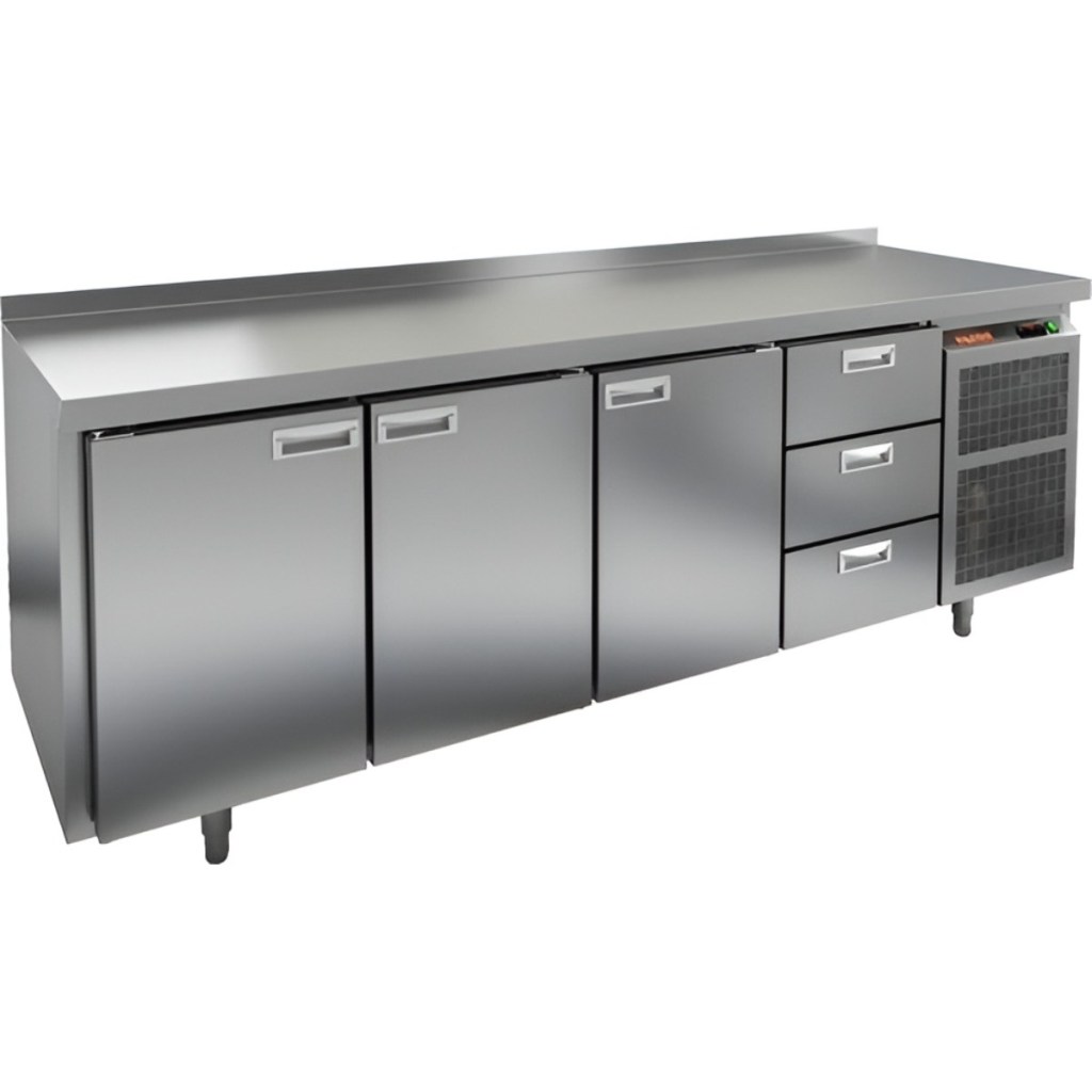 Каталог оборудования Холодильное оборудованиеСтолы охлаждаемыеСтолы морозильные низкотемпературныеСтол морозильный HiCold BN 1113/BT Стол морозильный HiCold BN 1113/BT Код товара: 062-073 Поделиться: WhatsAppTelegram СравнитьДобавить в КПВ избранное 0 251 451 ₽ В корзину 0 шт В наличииСамовывоз сегодня бесплатно Взять в кредит Купить в лизинг Получить консультацию в Max Описание Характеристики Отзывы 0 Инструкции 2 Стол морозильный HiCold BN 1113/BT предназначен для заморозки и хранения скоропортящихся продуктов и напитков на предприятиях общественного питания и торговли. Он сочетает в себе удобство использования и высокую эффективность. Управление осуществляется с помощью простой и понятной электронной панели. Конструкция корпуса и столешницы выполнена из прочной нержавеющей стали, что обеспечивает долговечность и гигиеничность оборудования. В комплект входят 3 полки, что позволяет удобно организовать внутреннее пространство для хранения различных продуктов. Особенности: Автоматические доводчики дверей с фиксацией в открытом положении — для комфортной загрузки и выгрузки продуктов; Легкозаменяемые магнитные уплотнители — обеспечивают плотное закрытие дверей и снижают теплопотери; Регулируемые по высоте ножки — позволяют устанавливать стол на неровных поверхностях; Толщина столешницы — 50 мм; Толщина теплоизоляции — 50 мм — для сохранения стабильной температуры; Высота борта — 50 мм — предотвращает затекание жидкости и обеспечивает чистоту на рабочем месте. Морозильный стол HiCold BN 1113/BT — это надежное и практичное оборудование, обеспечивающее качественное хранение продуктов и удобство в ежедневной работе персонала кухни.Изображение товара, представленного на фото, может отличаться от его фактического вида. Показать все Габаритные размеры2280×500×850 ммДиапазон рабочей температурыот -18 до -10 °CРасположение агрегатаБоковое Материал столешницыНержавеющая Тип столаС дверьми и ящиками Тип двериГлухая Объём460 лКоличество дверей3 штКоличество полок3 штКоличество ящиков3 штРазмер полки330×325 ммНапряжение220 ВМощность0,75 кВтТип охлажденияДинамический Тип оттайкиАвтоматическая СтолешницаС бортом Вес нетто135 кгВес брутто155 кгБрендHicoldВсе морозильные столы HicoldВсе морозильные столы с бортом Оставить отзыв Еще никто не оставил отзыв на этот товар Паспорт на HICOLD BN 1113/BT.pdfДекларация о соответствии.pdf Ранее просмотрено Под заказ 247 311 ₽ Стол морозильный HiCold GNE 222/BT В наличии 256 761 ₽ Стол морозильный HiCold BN 1112 BR2 BT