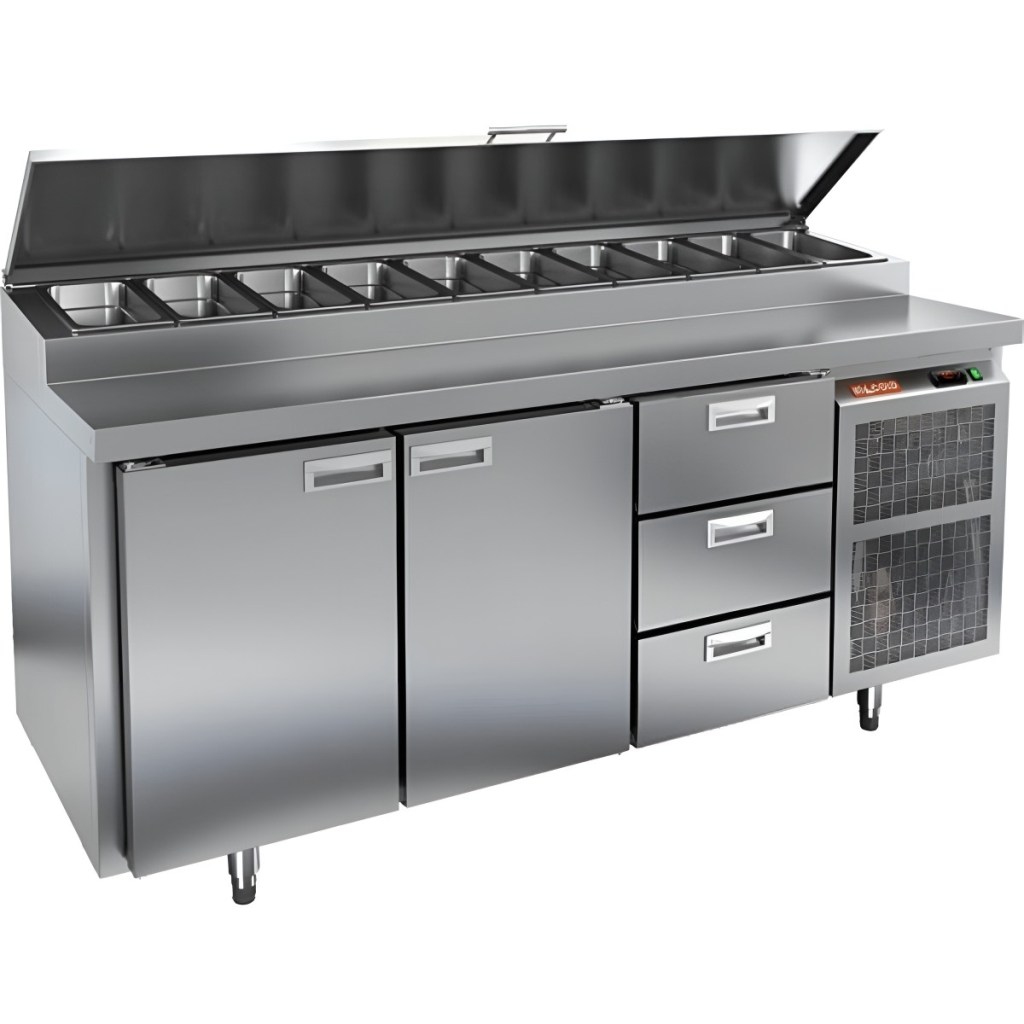 Каталог оборудования Холодильное оборудованиеСтолы охлаждаемыеСтолы холодильные для пиццыСтол холодильный для пиццы HiCold PZ1-113GN (1/3H) Стол холодильный для пиццы HiCold PZ1-113GN (1/3H) Код товара: 064-692 Поделиться: WhatsAppTelegram СравнитьДобавить в КПВ избранное 0 260 272 ₽ В корзину 0 шт Под заказСамовывоз сегодня бесплатно Взять в кредит Купить в лизинг Получить консультацию в WhatsApp Описание Характеристики Отзывы 0 Инструкции 2 Стол холодильный для пиццы HiCold PZ1-113GN (1/3H) — профессиональное оборудование для ресторанов, кафе и предприятий торговли. Он совмещает рабочую поверхность для раскатки теста и подготовки ингредиентов с охлаждаемым блоком для кратковременного хранения продуктов и напитков. Корпус и столешница выполнены из нержавеющей стали, что гарантирует долговечность и лёгкость ухода. Основные особенности: Динамическая система охлаждения — равномерное распределение холода Автоматическая оттайка — поддержка стабильной работы без наледи Электронная панель управления — точная настройка температуры и режимов 2 вместительные полки формата GN 1/1 3 выдвижных ящика для хранения дополнительных ингредиентов Автоматические доводчики дверей с фиксатором открытого положения — удобство загрузки и выгрузки Легкозаменяемые магнитные уплотнители — поддержание герметичности Открытая агрегатная часть — облегчённый доступ к техническим элементам Регулируемые по высоте ножки — установка по уровню Максимальная глубина гастроёмкостей: 150 мм (крайняя правая — 100 мм) Глубина рабочей поверхности: 324 мм Толщина столешницы и теплоизоляции: 50 мм Вместимость салат-бара: до 10 гастроёмкостей Стол холодильный HiCold PZ1-113GN (1/3H) — функциональный и удобный стол для пиццы и салатов, совмещающий рабочую поверхность, охлаждаемый блок, полки и ящики для хранения. Разная глубина гастроёмкостей и продуманная организация рабочего пространства делают его оптимальным решением для профессиональной кухни.Изображение товара, представленного на фото, может отличаться от его фактического вида. Показать все Габаритные размеры1835×700×1000 ммДиапазон рабочей температурыот +2 до +10 °CРасположение агрегатаБоковое Материал столешницыНержавеющая Тип столаС дверьми и ящиками Тип двериГлухая Объём505 лТип гастроемкостейGN 1/3 Количество дверей2 штКоличество ящиков3 штРазмер полки530×325 ммНапряжение220 ВМощность0,5 кВтТип охлажденияДинамическое Тип оттайкиАвтоматическая Габариты в упаковке2000×850×1140 ммВес нетто172 кгВес брутто200 кгБрендHicoldВсе холодильные столы для пиццы HicoldВсе нержавеющие холодильные столы для пиццы Оставить отзыв Еще никто не оставил отзыв на этот товар Паспорт на HICOLD PZ1-113GN.pdfДекларация о соответствии.pdf Ранее просмотрено Под заказ 250 822 ₽ Стол холодильный для пиццы HiCold PZE1-1112/GN (1/3) Под заказ 345 321 ₽ Стол холодильный для пиццы HiCold PZ3-1122/GN камень
