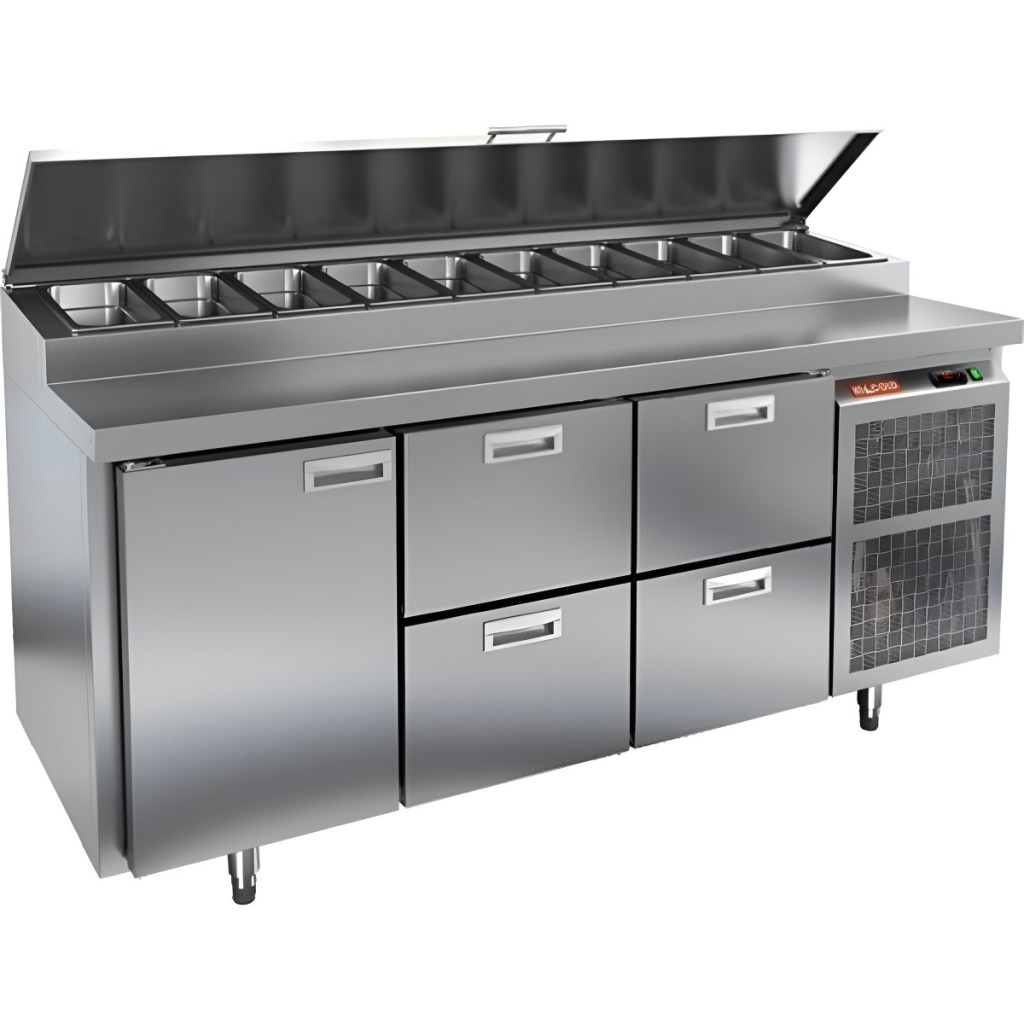 Каталог оборудования Холодильное оборудованиеСтолы охлаждаемыеСтолы холодильные для пиццыСтол холодильный для пиццы HiCold PZ1-122N (1/3) Стол холодильный для пиццы HiCold PZ1-122N (1/3) Код товара: 064-709 Поделиться: WhatsAppTelegram СравнитьДобавить в КПВ избранное 0 275 572 ₽ В корзину 0 шт Под заказСамовывоз сегодня бесплатно Взять в кредит Купить в лизинг Получить консультацию в WhatsApp Описание Характеристики Отзывы 0 Стол холодильный для пиццы HiCold PZ1-122GN (1/3) — профессиональное оборудование для предприятий общественного питания и торговли. Он сочетает рабочую поверхность для раскатки теста и подготовки ингредиентов с охлаждаемым блоком для кратковременного хранения скоропортящихся продуктов и напитков. Такое решение обеспечивает максимальное удобство — все необходимые компоненты всегда находятся под рукой. Корпус и столешница выполнены из нержавеющей стали, что гарантирует долговечность, устойчивость к повреждениям и лёгкость ухода. Основные особенности: Нержавеющая столешница и корпус — прочность, гигиеничность и лёгкость очистки Динамическая система охлаждения — равномерное распределение холода Автоматическая оттайка — стабильная работа без образования наледи Электронная панель управления — точная настройка температуры 1 дверца и 4 выдвижных ящика — удобная организация внутреннего пространства Автоматические доводчики дверцы и ящиков — комфорт при работе Легкозаменяемые магнитные уплотнители — поддержание герметичности Открытая агрегатная часть — лёгкий доступ для обслуживания Регулируемые по высоте ножки — установка на неровных поверхностях Максимальная глубина гастроёмкостей: 100 мм Глубина рабочей поверхности: 324 мм Толщина столешницы и теплоизоляции: 50 мм Вместимость салат-бара: до 10 гастроёмкостей Стол холодильный HiCold PZ1-122GN (1/3) — надёжный и функциональный холодильный стол для пиццы и салатов. Продуманная организация хранения и удобство эксплуатации обеспечивают быстрый доступ к ингредиентам и высокую производительность на профессиональной кухне.Изображение товара, представленного на фото, может отличаться от его фактического вида. Показать все Габаритные размеры1835×700×1000 ммДиапазон рабочей температурыот +2 до +10 °CРасположение агрегатаБоковое Материал столешницыНержавеющая Тип столаС дверьми и ящиками Тип двериГлухая Объём505 лТип гастроемкостейGN 1/3 Количество дверей1 штКоличество ящиков4 штРазмер полки530×325 ммНапряжение220 ВМощность0,5 кВтТип охлажденияДинамическое Тип оттайкиАвтоматическая Габариты в упаковке2000×850×1140 ммВес нетто172 кгВес брутто200 кгБрендHicoldВсе холодильные столы для пиццы HicoldВсе нержавеющие холодильные столы для пиццы Оставить отзыв Еще никто не оставил отзыв на этот товар Ранее просмотрено Под заказ 434 242 ₽ Стол холодильный для пиццы HiCold PZ2-3333GN (1/6)