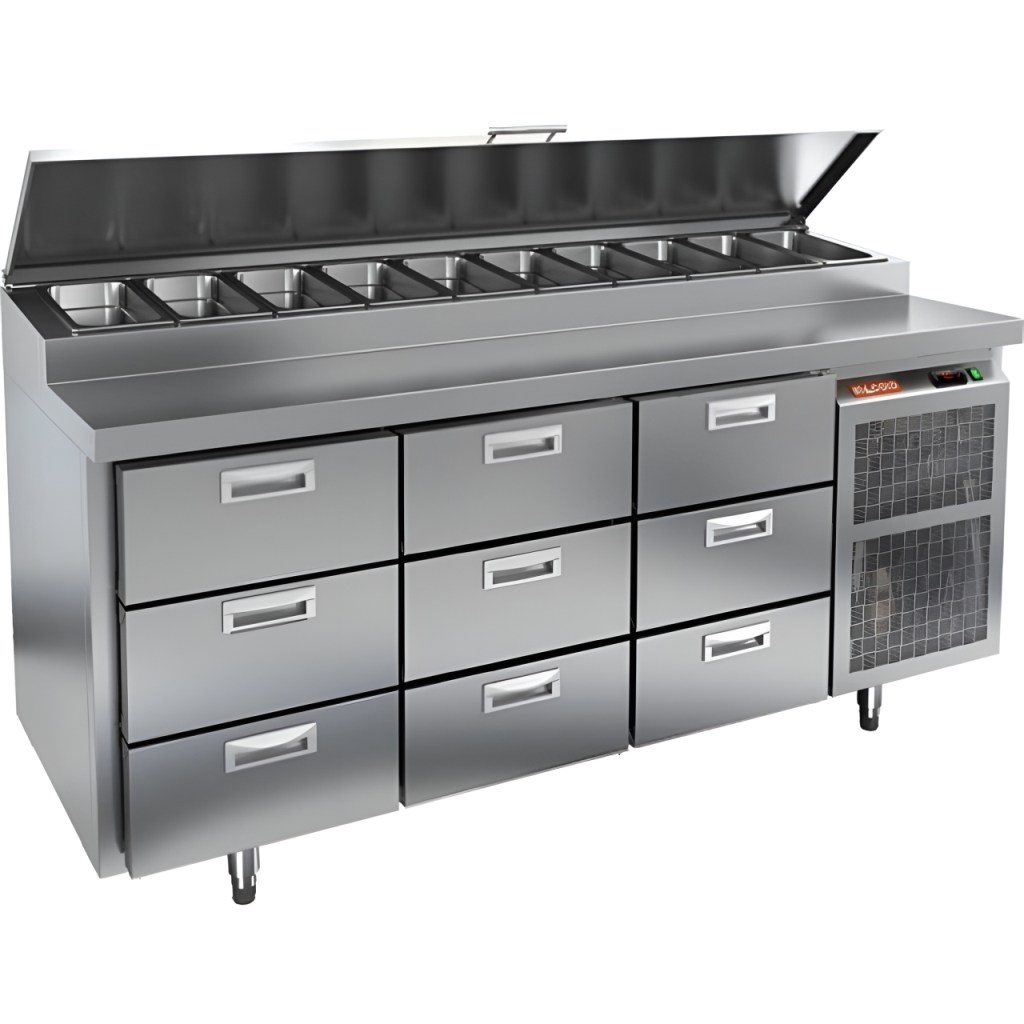 Каталог оборудования Холодильное оборудованиеСтолы охлаждаемыеСтолы холодильные для пиццыСтол холодильный для пиццы HiCold PZ1-333GN (1/3H) Стол холодильный для пиццы HiCold PZ1-333GN (1/3H) Код товара: 064-712 Поделиться: WhatsAppTelegram СравнитьДобавить в КПВ избранное 0 352 071 ₽ В корзину 0 шт Под заказСамовывоз сегодня бесплатно Взять в кредит Купить в лизинг Получить консультацию в WhatsApp Описание Характеристики Отзывы 0 Стол холодильный для пиццы HiCold PZ1-333GN (1/3H) — профессиональное оборудование для предприятий общественного питания и торговли. Он сочетает рабочую поверхность для раскатки теста и подготовки ингредиентов с охлаждаемым блоком для кратковременного хранения скоропортящихся продуктов и напитков. Такое решение обеспечивает максимальное удобство — все необходимые компоненты всегда находятся под рукой. Корпус и столешница выполнены из нержавеющей стали, что гарантирует долговечность, устойчивость к повреждениям и лёгкость ухода. Основные особенности: Нержавеющая столешница и корпус — прочность, гигиеничность и лёгкость очистки Динамическая система охлаждения — равномерное распределение холода Автоматическая оттайка — стабильная работа без образования наледи Электронная панель управления — точная настройка температуры 9 выдвижных ящиков — удобная организация внутреннего пространства без дверцы Автоматические доводчики ящиков — комфорт при работе Легкозаменяемые магнитные уплотнители — поддержание герметичности Открытая агрегатная часть — лёгкий доступ для обслуживания Регулируемые по высоте ножки — установка на неровных поверхностях Максимальная глубина гастроёмкостей: 100 мм Глубина рабочей поверхности: 324 мм Толщина столешницы и теплоизоляции: 50 мм Вместимость салат-бара: до 10 гастроёмкостей Стол холодильный HiCold PZ1-333GN (1/3H) — надёжный и функциональный холодильный стол для пиццы и салатов. Отсутствие дверцы и продуманная система хранения обеспечивают быстрый доступ к ингредиентам, удобство эксплуатации и высокую производительность на профессиональной кухне.Изображение товара, представленного на фото, может отличаться от его фактического вида. Показать все Габаритные размеры1835×700×1000 ммДиапазон рабочей температурыот +2 до +10 °CРасположение агрегатаБоковое Материал столешницыНержавеющая Тип столаС ящиками Объём505 лТип гастроемкостейGN 1/3 Количество ящиков9 штНапряжение220 ВМощность0,5 кВтТип охлажденияДинамическое Тип оттайкиАвтоматическая Габариты в упаковке2000×850×1140 ммВес нетто172 кгВес брутто200 кгБрендHicoldВсе холодильные столы для пиццы HicoldВсе нержавеющие холодильные столы для пиццы Оставить отзыв Еще никто не оставил отзыв на этот товар Ранее просмотрено В наличии 299 781 ₽ Стол холодильный для пиццы HiCold PZ4-1/GN камень