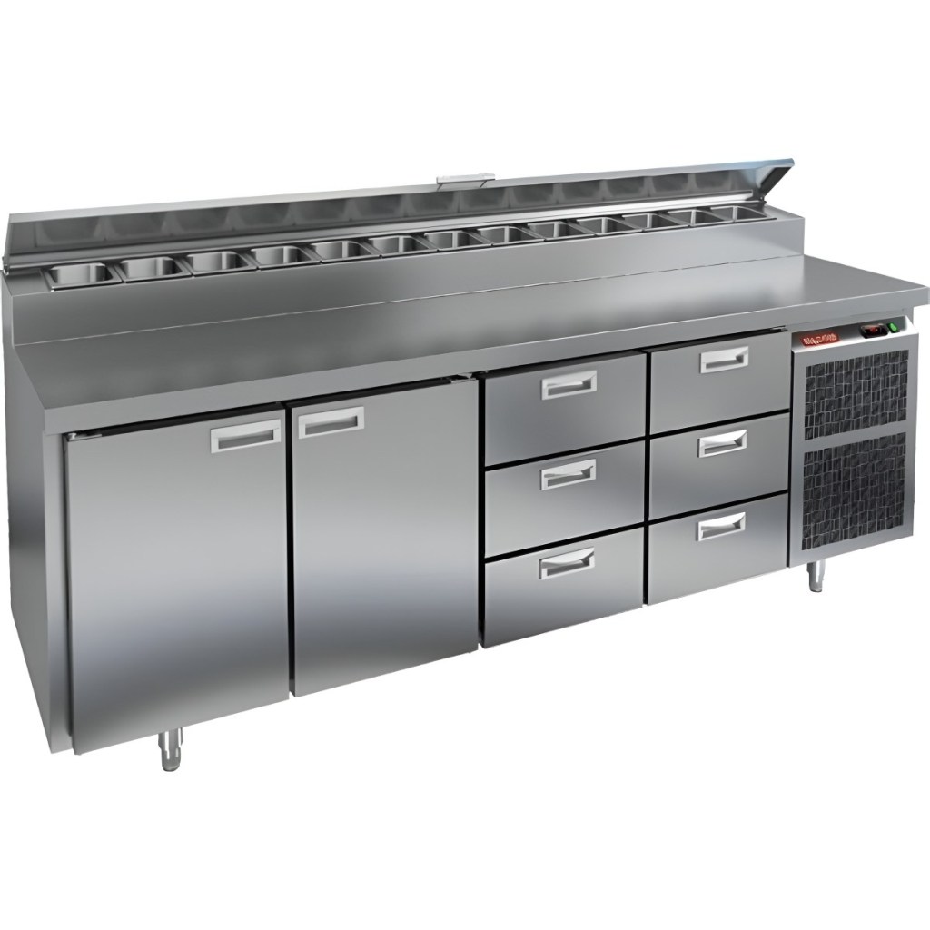 Каталог оборудования Холодильное оборудованиеСтолы охлаждаемыеСтолы холодильные для пиццыСтол холодильный для пиццы HiCold PZ2-1133GN (1/6) Стол холодильный для пиццы HiCold PZ2-1133GN (1/6) Код товара: 064-759 Поделиться: WhatsAppTelegram СравнитьДобавить в КПВ избранное 0 342 442 ₽ В корзину 0 шт Под заказСамовывоз сегодня бесплатно Взять в кредит Купить в лизинг Получить консультацию в Max Описание Характеристики Отзывы 0 Стол холодильный для пиццы HiCold PZ2-1133GN (1/6) предназначен для кухонь и предприятий общественного питания. Он используется для раскатки теста, подготовки ингредиентов для пиццы, салатов и других блюд, а также для охлаждения и кратковременного хранения скоропортящихся продуктов. Модель совмещает нержавеющую рабочую поверхность и охлаждаемый отсек с 2 дверьми и 6 ящиками, обеспечивая удобный доступ к ингредиентам и эффективное хранение. Особенности: Динамическая система охлаждения для равномерного поддержания температуры Автоматическая оттайка для удобного обслуживания Электронная панель управления для точной настройки параметров Вместительная внутренняя полка формата GN 1/1 (размер 530×325 мм) 2 двери и 6 вместительных ящика для хранения ингредиентов Автоматические доводчики дверей с фиксатором открытого положения Легкозаменяемые магнитные уплотнители для герметичности Открытая агрегатная часть для легкого доступа к компонентам Регулируемые по высоте ножки для устойчивости Нержавеющая столешница глубиной 486 мм и толщиной 50 мм — устойчива к коррозии, легко моется и гигиенична Толщина теплоизоляции: 50 мм Максимальная глубина гастроемкостей: 100 мм Вместимость салат-бара: 13 гастроемкости Стол холодильный HiCold PZ2-1133GN (1/6) — это надежный и функциональный стол для пиццы. Он объединяет рабочую поверхность и охлаждаемый отсек, упрощает хранение и подготовку ингредиентов, обеспечивает удобство работы повара и соответствует стандартам профессиональной кухни. Изображение товара, представленного на фото, может отличаться от его фактического вида. Показать все Габаритные размеры2280×700×1000 ммДиапазон рабочей температурыот +2 до +10 °CРасположение агрегатаБоковое Материал столешницыНержавеющая Тип столаС дверьми и ящиками Тип двериГлухая Объём660 лТип гастроемкостейGN 1/6 Количество дверей2 штКоличество ящиков6 штРазмер полки530×325 ммНапряжение220 ВМощность0,5 кВтТип охлажденияДинамическое Тип оттайкиАвтоматическая Габариты в упаковке2420×850×1080 ммВес нетто208 кгВес брутто240 кгБрендHicoldВсе холодильные столы для пиццы HicoldВсе нержавеющие холодильные столы для пиццы Оставить отзыв Еще никто не оставил отзыв на этот товар Ранее просмотрено Под заказ 87 108 ₽ Плита индукционная Аbat КИП-1Н-5,0 ВОК Под заказ 220 221 ₽ Стол холодильный для пиццы HiCold PZE1-1111GN (1/3) В наличии 63 254 ₽ Шкаф холодильный HURAKAN HKN-DB205S