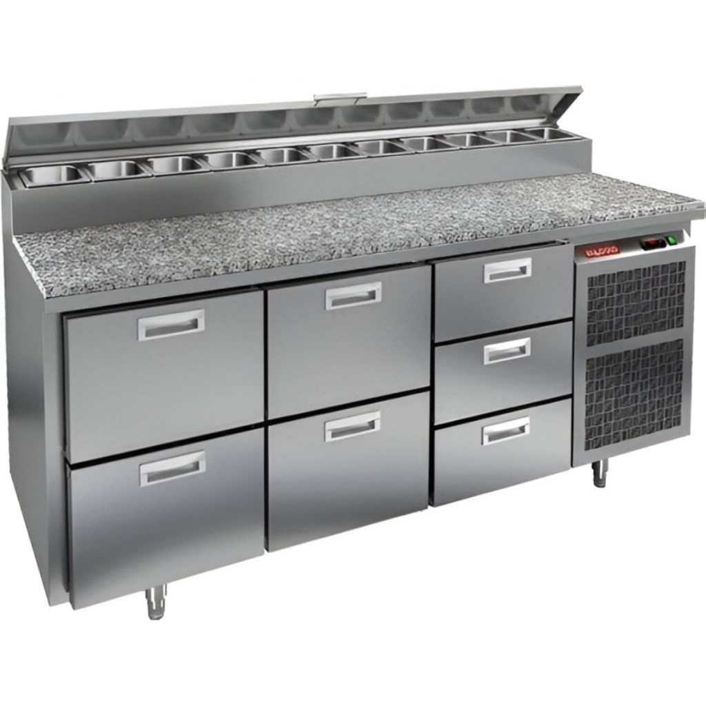 Каталог оборудования Холодильное оборудованиеСтолы охлаждаемыеСтолы холодильные для пиццыСтол холодильный для пиццы HiCold PZ2-223GN (1/6) камень Стол холодильный для пиццы HiCold PZ2-223GN (1/6) камень Код товара: 064-772 Поделиться: WhatsAppTelegram СравнитьДобавить в КПВ избранное 0 353 962 ₽ В корзину 0 шт Под заказСамовывоз сегодня бесплатно Взять в кредит Купить в лизинг Получить консультацию в WhatsApp Описание Характеристики Отзывы 0 Стол холодильный для пиццы HiCold PZ2-223GN (1/6) камень предназначен для профессиональных кухонь и предприятий общественного питания. Он используется для раскатки теста, подготовки ингредиентов для пиццы, салатов и других блюд, а также для охлаждения и кратковременного хранения скоропортящихся продуктов. Модель совмещает гранитную рабочую поверхность и охлаждаемый отсек с 7 выдвижными ящиками, что обеспечивает максимальное удобство доступа к ингредиентам и эффективное распределение хранения. Особенности: Динамическая система охлаждения для равномерного поддержания температуры Автоматическая оттайка для удобного обслуживания Электронная панель управления для точной настройки параметров Вместительная внутренняя полка формата GN 1/1 (размер 530×325 мм) 7 выдвижных ящиков для хранения ингредиентов Легкозаменяемые магнитные уплотнители для герметичности Открытая агрегатная часть для легкого доступа к компонентам Регулируемые по высоте ножки для устойчивости Гранитная столешница глубиной 486 мм и толщиной 50 мм — устойчива к повреждениям, легко моется и гигиенична Толщина теплоизоляции: 50 мм Максимальная глубина гастроемкостей: 100 мм Вместимость салат-бара: 11 гастроемкости Стол холодильный HiCold PZ2-223GN (1/6) камень— это профессиональное решение для кухонь с высоким потоком заказов. Он сочетает прочность, функциональность и удобство, обеспечивая идеальные условия для хранения и подготовки ингредиентов.Изображение товара, представленного на фото, может отличаться от его фактического вида. Показать все Габаритные размеры1835×700×1000 ммДиапазон рабочей температурыот +2 до +10 °CРасположение агрегатаБоковое Материал столешницыГранитная Тип столаС ящиками Объём505 лТип гастроемкостейGN 1/6 Количество ящиков7 штРазмер полки530×325 ммНапряжение220 ВМощность0,5 кВтТип охлажденияДинамическое Тип оттайкиАвтоматическая Габариты в упаковке2000×850×1140 ммВес нетто172 кгВес брутто248 кгБрендHicoldВсе холодильные столы для пиццы Hicold Оставить отзыв Еще никто не оставил отзыв на этот товар Ранее просмотрено Под заказ 243 000 ₽ Горка холодильная Ангара ГХ 900 - 2,5 (без боковин) Под заказ 184 042 ₽ Стол холодильный для пиццы HiCold PZ1-11/GN (1/3H) (R290)