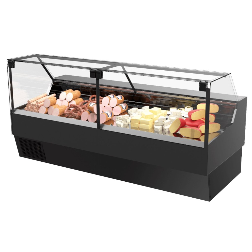 Kifato Атланта 2500 статика — современная и надежная витрина с большой площадью выкладки, качественными комплектующими и безопасной статической системой охлаждения, идеально для магазинов, кафе и предприятий общепита.