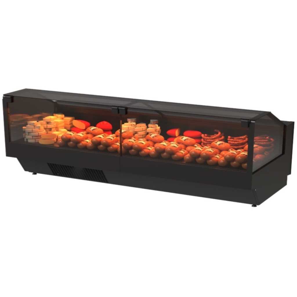 Модель оснащена ударопрочным бампером из ABS-пластика, светодиодной подсветкой и регулируемыми по высоте ножками, задние шторки выполнены из оргстекла, а стекла открываются сверху, что обеспечивает удобство выкладки и обслуживания.