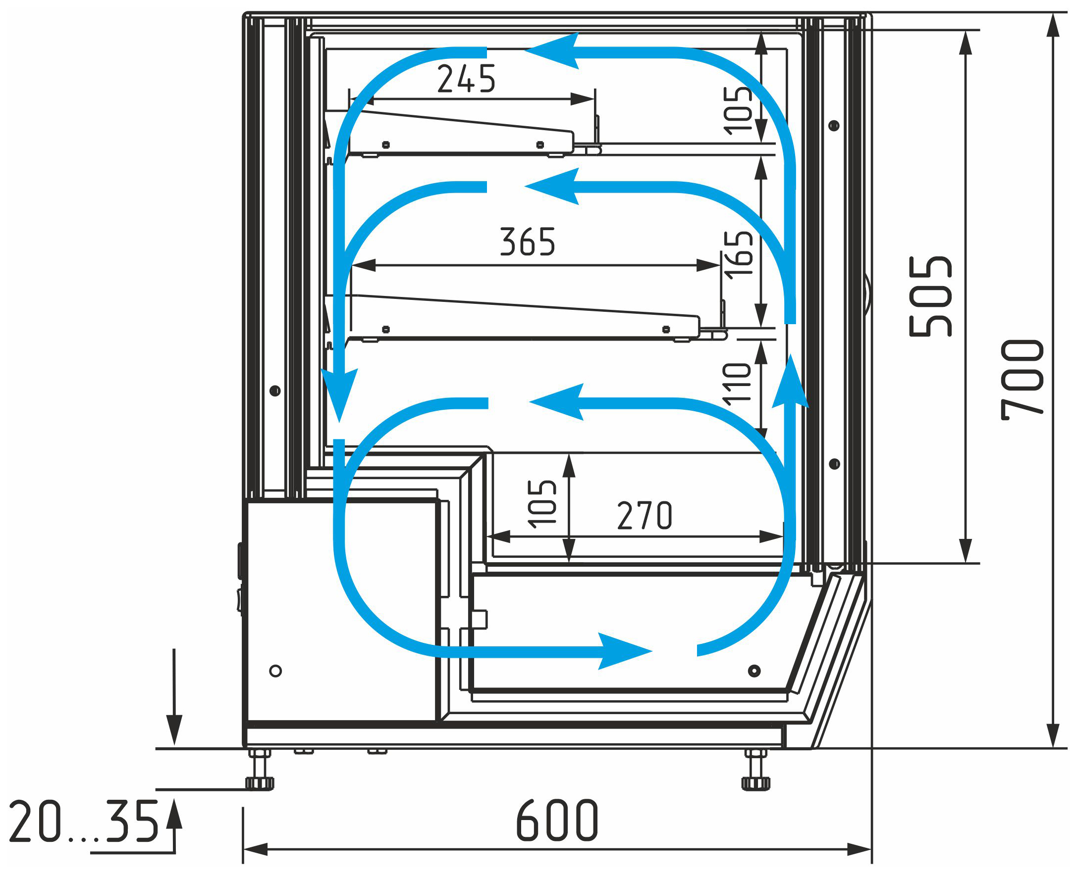 Каталог оборудования Холодильное оборудованиеВитрины настольныеВитрина холодильная настольная Carboma AC59 VM 0,9-1 (слайдер) (0430) Витрина холодильная настольная Carboma AC59 VM 0,9-1 (слайдер) (0430) Код товара: 063-687 Поделиться: WhatsAppTelegram СравнитьДобавить в КПВ избранное 0 117 630 ₽ В корзину 0 шт Под заказСамовывоз сегодня бесплатно Взять в кредит Купить в лизинг Получить консультацию в WhatsApp Описание Характеристики Отзывы 0 Инструкции 2 Витрина холодильная настольная Carboma AC59 VM 0,9-1 (слайдер) (0430) — это универсальная охлаждаемая витрина для демонстрации и кратковременного хранения кондитерских изделий, десертов, салатов и напитков. Идеально подходит для небольших кафе, баров и заведений общественного питания. Модель оснащена закалёнными боковыми стеклопакетами, раздвижными фронтальными и задними дверцами, а также двумя охлаждаемыми полками-решётками с ограничителями. Может устанавливаться на столешницу или встраиваться в барную стойку. Корпус выполнен из стали с ППУ-теплоизоляцией, а рабочая поверхность — из нержавеющей стали. Ключевые особенности: Динамическая система охлаждения — равномерное распределение температуры Компрессор европейского производства — высокая надёжность Электронный блок управления Carel — точный контроль температурного режима Выпариватель конденсата — исключает необходимость ручного слива Возможность установки полок под углом 5° — улучшенная презентация Фронтальные и задние раздвижные дверцы — удобный доступ с обеих сторон Боковая LED-подсветка — подчёркивает структуру десертов и изделий Современный кубический дизайн — стильный внешний вид Регулируемые ножки-опоры — устойчивость на любых поверхностях Настольное или встраиваемое размещение — гибкость установки Стабильный температурный режим — для безопасного хранения продуктов Глубина нижней зоны выкладки: 270 мм Глубина полок: 365 мм (верхняя) / 245 мм (нижняя) Длина нижнего поддона: 866 мм Максимальная высота выкладки продуктов: нижний поддон — 150 мм, полки — 100 мм Температура окружающей среды: от 12 до 25 °C Относительная влажность воздуха: до 60% Carboma AC59 VM 0,9-1 (слайдер) (0430) — это надёжная и эргономичная охлаждаемая витрина с удобным доступом с обеих сторон, которая обеспечит качественную демонстрацию и сохранность продукции в кафе, барах и точках продаж.Изображение товара, представленного на фото, может отличаться от его фактического вида. Показать все Габаритные размеры900×600×735 ммДиапазон рабочей температурыот +4 до +10 °CДлина900 ммГлубина600 ммВысота735 ммРазмещениеГоризонтальная Площадь выкладки0,73 м²Полезный объем витрины0,09 м³Тип охлажденияДинамическое Климатический класс3 ХладагентR290, R600a Напряжение220 ВЭнергопотребление в сутки0,5 кВтКоличество полок2 штГабариты в упаковке1050×750×890 ммВес нетто89 кгВес брутто126 кгБрендПолюсВсе витрины настольные CarbomaВсе холодильные настольные витриныВсе стеклянные настольные витрины Оставить отзыв Еще никто не оставил отзыв на этот товар Брошюра на Carboma AMRA AC59 VM.pdfСхема Carboma AMRA AC59 VM 0,9-1 Slider.jpg Похожие товары Перейти в каталог Под заказ 178 000 ₽ Витрина кондитерская Carboma KC70 VM 0,6-2 Standard (9005-0430) открытая Под заказ 190 800 ₽ Витрина кондитерская Carboma KC84-130 VV 0,9-1 (9005) Под заказ 113 100 ₽ Витрина кондитерская Carboma K70 N 0,9-1 Light Bread Паттерн (0106 Седой дуб) хлебная, со стеклом Под заказ 98 800 ₽ Витрина кондитерская Carboma D4 VM 120-2 (R120Cвр) цвет по схеме стандарт Под 