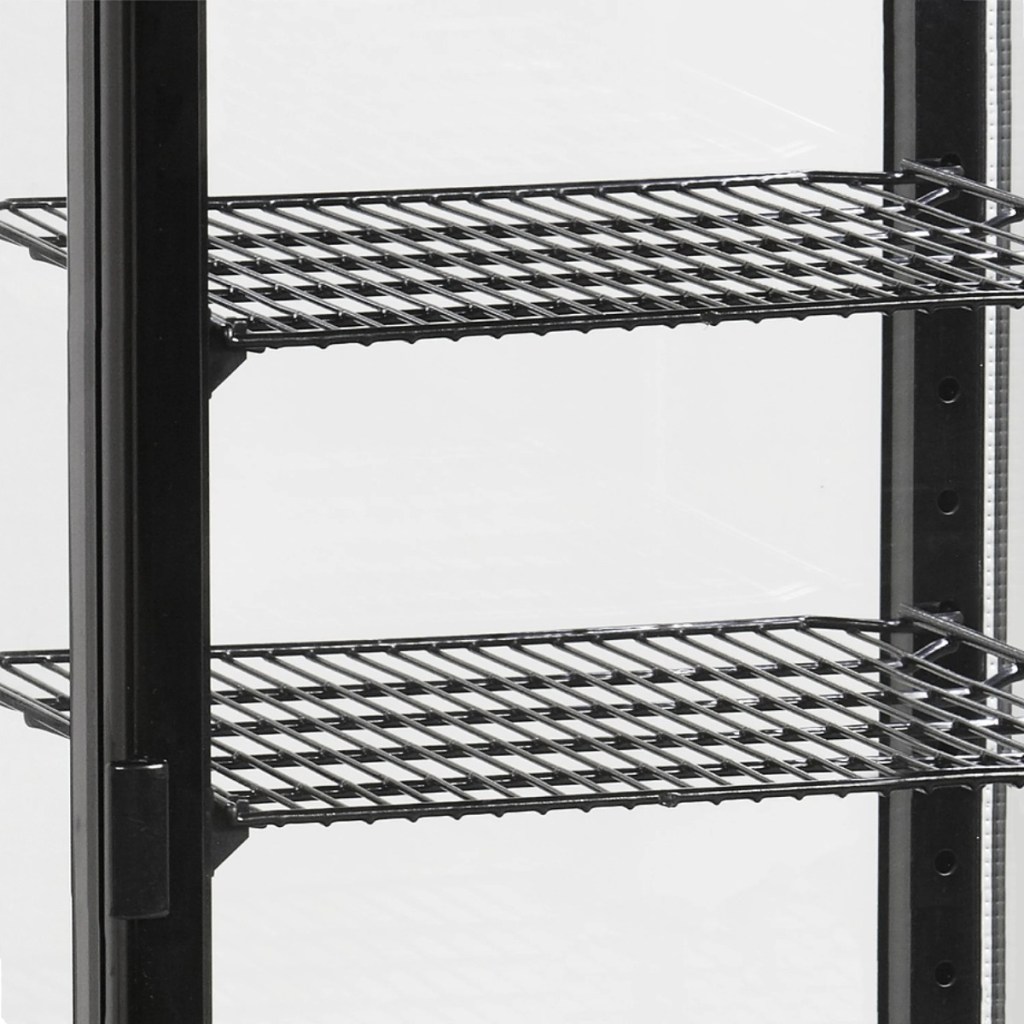 Витрина оснащена стеклянной дверью, LED-подсветкой, 2 регулируемыми полками и градусником, что облегчает контроль температуры и обеспечивает привлекательную демонстрацию продукции. Внешняя и внутренняя обшивка выполнена из ABS-пластика, что гарантирует долговечность и лёгкий уход.